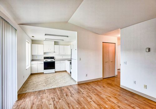 Our Lincoln floor plan features two spacious bedrooms with large closets, an open living area, and a fully-equipped kitchen.